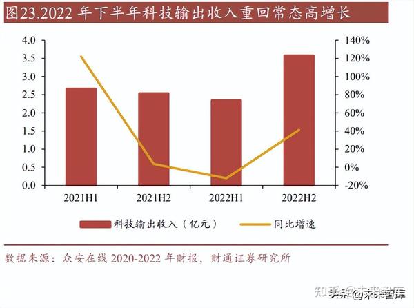对外输出:以众安科技与众安国际为载体,持续开拓海内外市场,已累计服务来 自保险、互联网科技、银行、证券等多个行业的 700 余家客户,将众安的科技中 心转变为销售部门和利润中心,公司 2022 年业绩发布会表示,公司科技板块有望 在两年内实现扭亏为盈。 科技基因深厚驱动科技输出高速增长,近 5 年复合增速超 70%。2022 年受疫情影 响项目交付影响,增速放缓至 14%,但 H2 同比+41%重回常态高增长,预计 23 年 有望继续高增。